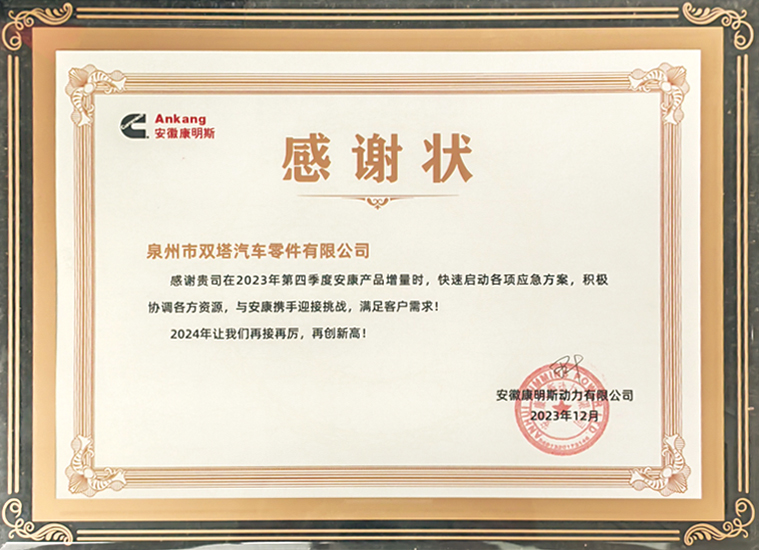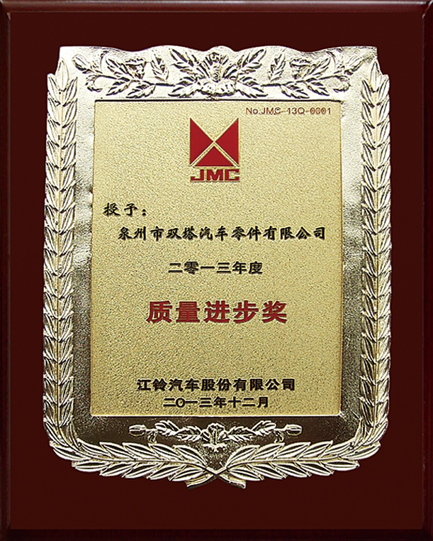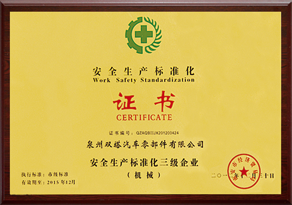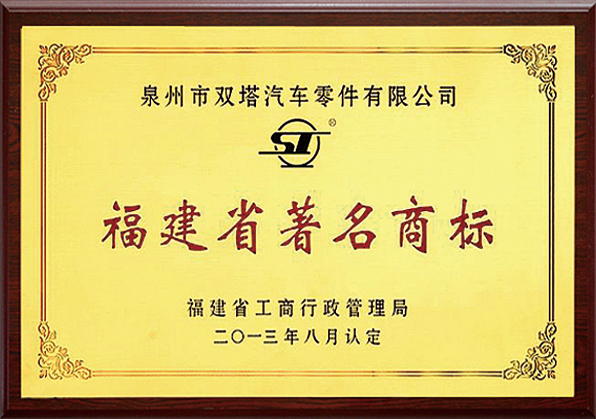 In 2005, the trademark "ST" was recognized as a Famous Trademark of Fujian Province by the Fujian Provincial Trademark Recognition Committee. The company has also received numerous honorary certificates issued by governments at all levels and industry authorities, including "Industrial Star Enterprise", "Famous Trademark of Fujian Province" and "Famous Brand Product of Fujian Province". The "Shuangta" brand series of auto parts have been widely recognized by numerous customers both at home and abroad.