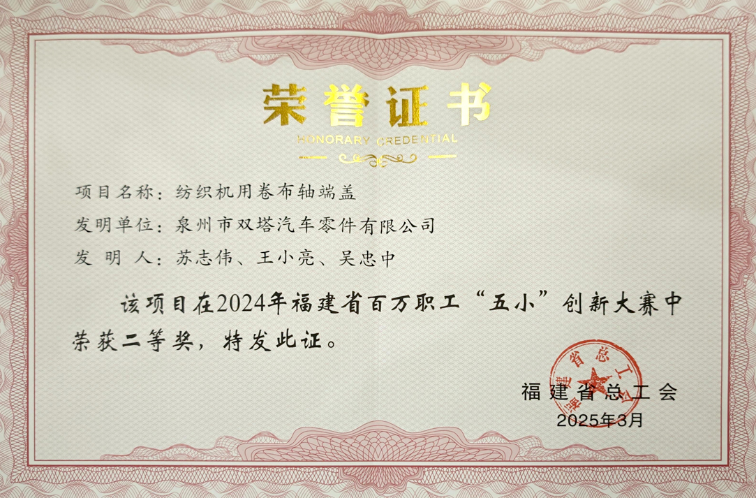 我们隶属于泉州市双塔汽车零件有限公司,在配套国内外车辆主机厂零部件的领域已经深耕了40多年。这四十多年的发展历程,是一部充满奋斗与创新的历史。从最初的小作坊式生产,到如今拥有现代化生产设备和完善管理体系的高新技术企业,我们经历了无数的挑战和机遇。在这个过程中,我们始终坚持以市场为导向,以客户需求为中心,不断提升产品质量和服务水平。经过多年的积累和沉淀,我们在汽车零部件行业树立了良好的品牌形象,赢得了客户的广泛认可和信赖。2025年8月投入使用的新厂区,是公司发展的又一个重要里程碑,标志着我们将以更加崭新的姿态和更加强大的实力,迎接未来的挑战和机遇。